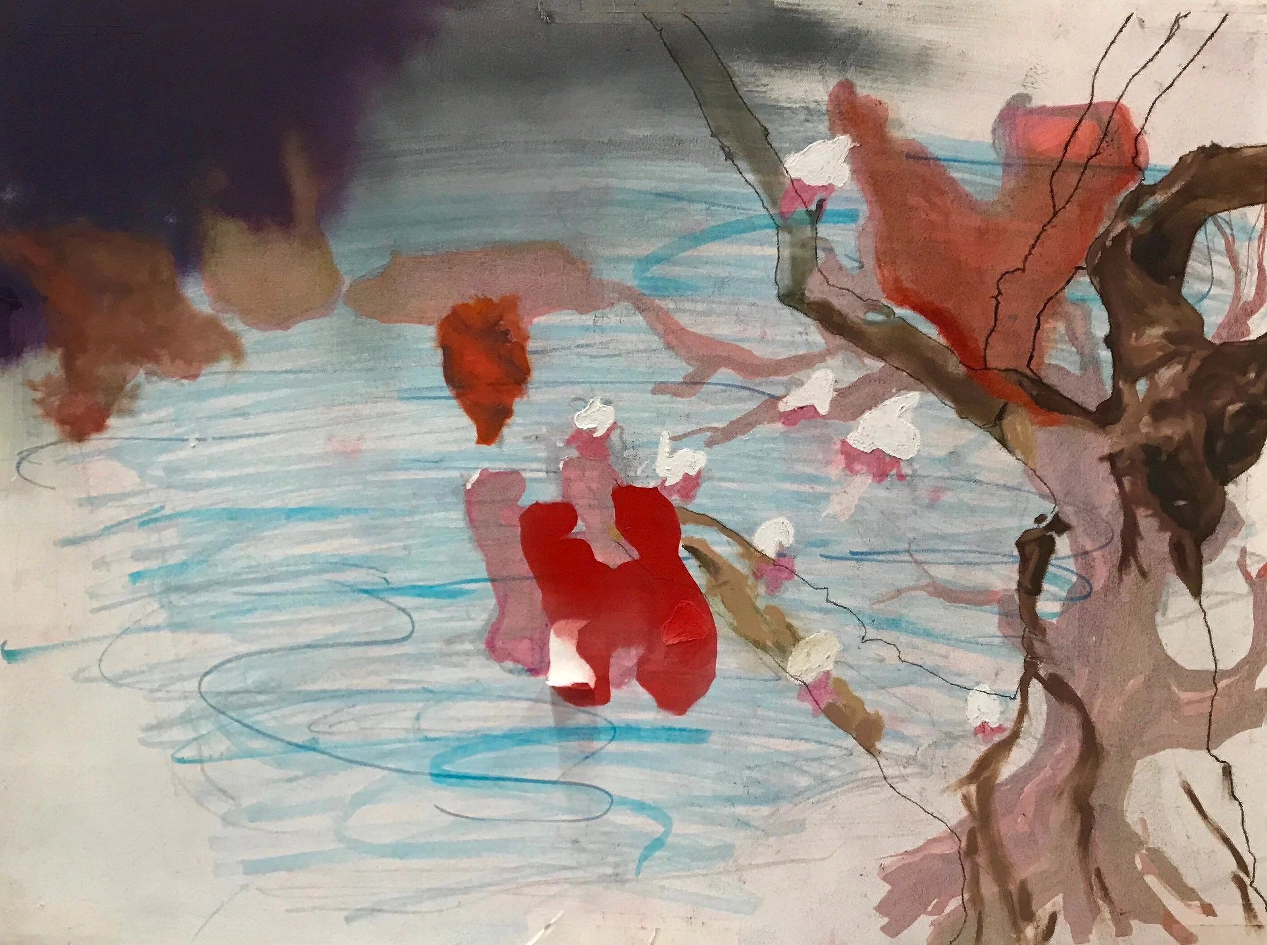 “Spring Fire,” marker, acrylic, spray paint, and oil on canvas paper